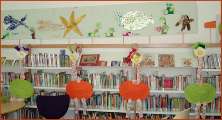 l'entrée de la médiathèque avec une magnifique mare à grenouilles !