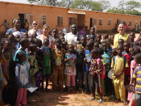 Une photo du Sénégal : les enfants brandissent des livres d'Emmanuelle Deméautis et on voit un "Nouvelles Lunes" !!!!!!